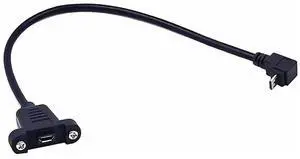 Aomoproing 0.3 Meter Micro USB 5 Pin Extension Cable, Right Angle Micro USB Male to Female Extender Bolt Screw Lock Mount Cable, Sync Data & Charging