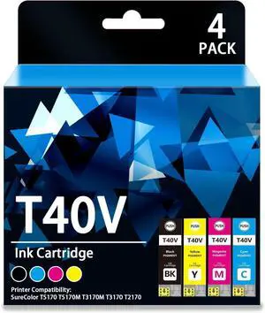 Remanufactured T40V Ink Cartridges with Chip-60ml/50mlT40V120 T40V220 T40V320 T40V420 for T40W Ink SureColor T5170 T5170M T3170M T3170 T2170 SC-T2170 T5170 T3170 Printer(BCMY, 4Pack)