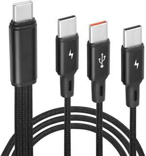 Vszerda USB C Splitter Multi Charging Cable,USB C 1 to 2 USB C/Micro USB Charge Extension Cable Supports Charging Two Devices at The Same Time 0.98FT/0.3M