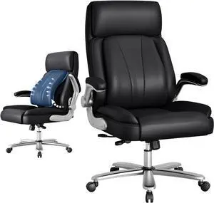 CLATINA Executive Office Chair PU Leather with Adjustable Flip-up Armrests, High Back Ergonomic Computer Task Chair with Lumbar Support Wheels Swivel Rolling Rocking for Home Desk Chair, Black