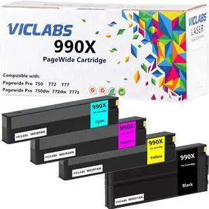 990X Ink Cartridge Replacement for HP 990X M0K01AN M0J89AN M0J93AN M0J97AN Ink cartridges for use in HP Pagewide Pro 750dw 750dn 772dn 772dw 777z 755dn MFP 774dn 774dns Printers (4-Pack,BCMY)