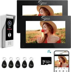 ANJIELO SMART Wired Apartment Video Intercom System 2 Units 7 Inch Touch Monitor WiFi Video 1080P Doorbell System, Video Door Phone Kit, Black, Supports Monitoring, Unlock, for Home Villa