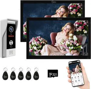 Wireless Video Doorbell Intercom System Doorbell with Camera,10 inch Touch Monitor 1080P Video Entry Doorphone TUYA IP Wired Video Door Phone for Home Villa Apartment (1 Bell+2 * 10 inch)