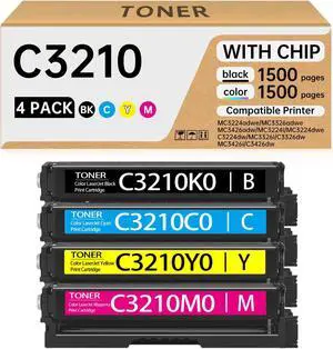 C3210 C3224 Toner Cartridge (4-Pack, with Chip) C3210K0/C3210C0/C3210Y0/C3210M0 Compatible with Lexmark MC3224 MC3326 MC3426 MC3224i MC3224 C3224 MC3326i C3326 MC3426i C3426-1,500 Pages per Color