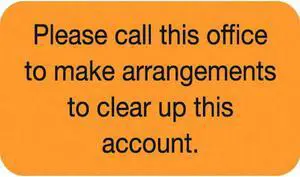 1-1/2" x 7/8" Fl Orange Billing Labels: Please call this office to make arrangements to clear up this account (250/Roll)