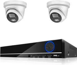 H.265 8CH 4K Security Camera System POE 8MP Ai Human Indoor Outdoor Metal Dome Color Night Video Surveillance Camera Kit(None,14)
