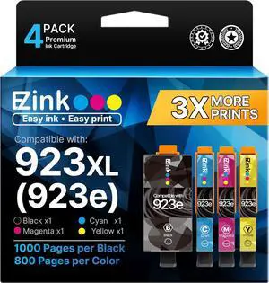 E-Z Ink 923XL 923e 923 Ink cartridges Replacement for hp 923xl Ink cartridges Combo Pack for hp officejet pro 8130e 8125e 8135e 8138e 8139e 8122e Printers(4 Pack Black and Color Combo Pack with Chip)