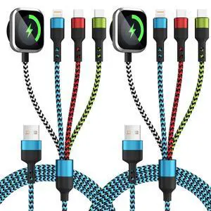 Travel Essentials,USB A 4 in 1 Multi Charging Cable for i Watch Charger/Type C Charger/IP Port,Travel Chargers for Multiple Devices (Blue, 5FT 2Pack)