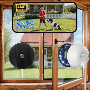 2K Window Camera No Drill Window Cameras5G & 2.4GHz Indoor Window Security Camera for Home Security with Color Night Vision, Anti-Glare, AI Person & Motion Detection, 24/7 Recording 2Pack