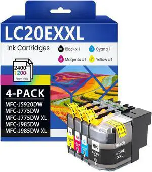 LD Compatible Ink Cartridge Replacement for Brother LC20E Super High Yield (Black, Cyan, Magenta, Yellow, 4-Pack)