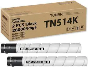 TN514 TN514K TN-514 TN324 TN326 TN512 TN513 TN515 TN516 A9E8130 Toner Cartridge Compatible for Konica Minolta Bizhub C458 C558 C658 Printer (28,000 Pages, Black, 2 Pack )