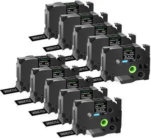 GREENCYCLE TZe-355 24mm 0.94 Laminated Black Tape Compatible for Brother P-Touch White on Black TZ-355 TZe355 1 inch TZe TZ Tape for Ptouch PT-D600 PT-D610BT PT-P700 PT-P710BT, 10 Pack