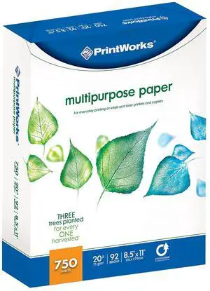 Multipurpose Paper, 20 Pound, 92 Bright, 750 Sheets, 8.5x11 Inches (00009),White
