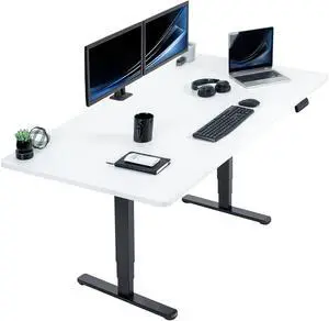 VIVO Electric 60 x 24 Stand Up Desk Workstation | Black Table Top, White Frame
