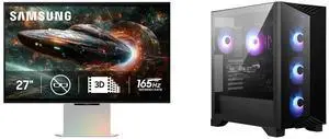 SAMSUNG 27-inch Odyssey 3D G90XF Gaming Computer Monitor, 4K, 165Hz, 1ms Response Time, AMD FreeSync Premium, Glasses-Free, Ergonomic Stand, LS27FG900XNXZA, 2025 MSI Gaming Desktop PC Aegis Z2 C8NVP-1656US AMD Ryzen 7 8700F 32GB DDR5 1TB NV