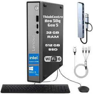 Lenovo ThinkCentre M70q Business Desktop (Intel i7-14700T, 64GB DDR5, 2TB PCIe SSD, Intel UHD 770, 135W PSU, WiFi 6, Bluetooth 5.2, RJ-45, 1 Display Port, HDMI, Win 11 Pro)- Type: Business Desktops & Workstations