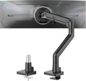 monTEK Heavy-Duty Monitor Arm for 17-57" Ultrawide Curved Screen, Supports up to 59.4 lbs, Adjustable Gas Spring Arm, 75/100 VESA Mount, Clamp & Grommet Desk Monitor Mount Single, Black