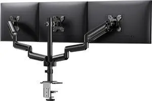 Pholiten Triple Monitor Stand, Mount for 3 Screens up to 32 inches & 22lbs Each, Full Motion Gas Spring Monitor Arm with Clamp Mounting, for Desktops, Computer Monitors