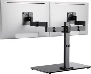 ErGear Freestanding Dual Monitor Stand for 17 to 32 Inch Screens, Computer Monitor Mount for 2 Screens, Dual Monitor Arm with Tempered Glass Base, VESA Mount Desk Stand Holds 22 lbs per Arm