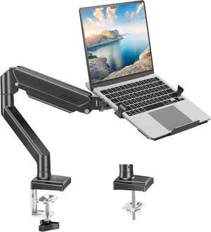 MOUNT PRO Laptop Arm Mount for Desk, 2 in 1 Function Monitor Laptop Stand, Fits Max 17" Notebook and 32" Computer Screen, Aluminum Single Monitor Holder with Adjustable Tray, Holds up to 22lbs