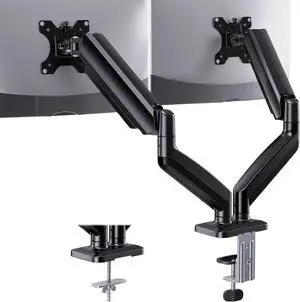 HUANUO Dual Monitor Mount, Mounts 2 Screens Up to 32 Inch, Holds 22 lbs per Arm, Dual Monitor Stand with Excellent Design, Height-Adjustable, Tilt, Swivel & Rotate, VESA Standard 75mm or 100mm