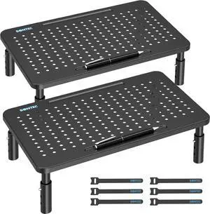 ELIVED 2 Pack Monitor Stand Riser - 3 Height Adjustable Monitor Stand for Laptop, Computer, PC, Printer, Mesh Metal Monitor Riser for Desktop Organizer.