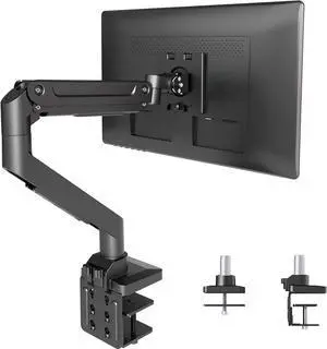 EVEO Premium Single Monitor Arm 14"34", Adjustable Gas Spring Monitor Mount, Single Arm Desk Mount for 34 Inch Computer Screens, VESA Compatible Stand with Clamp and Grommet Base Black