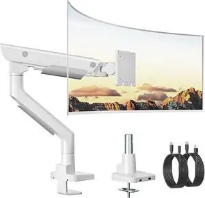 monTEK Sleek Aluminum Monitor Arm for 1757 Ultrawide Screens up to 59.4 lbs, USB 3.0 A/C, Heavy Duty Single Monitor Arm Desk Mount, Pneumatic Lift, Quick-Release Plate, Clamp/Grommet, VESA 100x100
