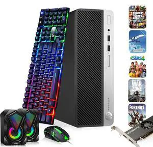 Restored HP 400 G5 SFF Gaming PC | i5-8th Gen Processor | Nvidia GT 1030 GPU | 16GB DDR4 RAM | 256GB SSD+1TB HDD | WiFi+ Gaming Keyboard & Mouse | Windows 11 Pro Gaming PC Bundle (Refurbished)