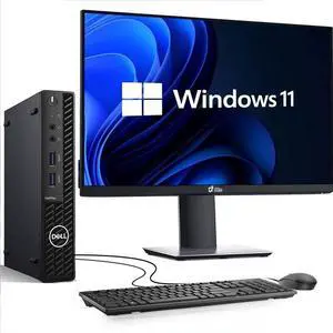 DELL 3050 Desktop Mini PC, Intel Core i5-7500T, 8GB DDR4 RAM,128GB SSD, Wi-Fi, Wireless Keyboard and Mouse, Intel HD Graphics 630,  Windows 11 Pro, 24 Inch LED Monitor, Desktop PC (Renewed)