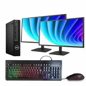 Dell OptiPlex 3060 Mini PC | Intel Core i5 8th Gen Hexa Core | 32GB RAM | 1TB SSD | Windows 11 Pro | Dual 24" LCD Monitors | WiFi + Bluetooth | RGB Speaker