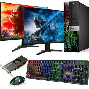 Dell RGB Gaming Desktop PC | Intel Core i5-6500 | 16GB DDR4 RAM | 256GB SSD | Windows 11 Pro | RGB Keyboard & Mouse | WiFi | NVIDIA GeForce GT 1030 | Dual 24 Inch LED Monitor | Gaming PC (Refurbished)