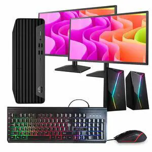 HP ProDesk 600 G6 Desktop PC | Intel Core i5 10th Gen Hexa Core | 32GB RAM | 500GB NVME + 1TB SSD | Windows 11 Pro | Dual 24" LCD Monitors | Quadro P620 | RGB Speaker | AX200 WiFi + BT