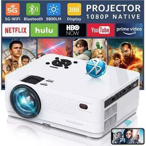 Native 1080P Projector with 5G WiFi Bluetooth, 4K Supported Home Projector, Portable Outdoor Projector with Max 300" Display, Movie Projector Compatible with TV Stick, HDMI, Phone