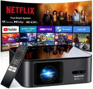 1200 ANSI/4K Supported/Netflix LicensedSmart Projector with WiFi and Bluetooth, Movie Home Theater with AI Auto Focs& Keystone, Video Projector with Dolby, 400'' Display for Indoor/Outdoor Proyector