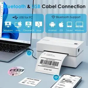MUNBYN Bluetooth Thermal Label Printer 941B, Wireless 300DPI 4x6 Shipping Label Printer for Small Business, Compatible with Windows, Mac, iPhone, Android, PC, Ebay, Amazon, Shopify, Etsy, USPS (White)