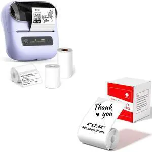 Phomemo M110 Bluetooth Label Maker with 3 Rolls 1.96'' x 2.75'' (50x70mm) Thermal Labels- Thermal Label Maker Printer Apply to Labeling, Office, Cable, Retail, Barcode, Compatible with Android & iOS