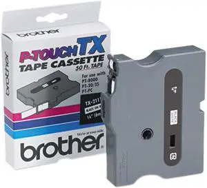 Brother P-Touch BRTTX2111 TX Tape Cartridge for PT-8000, PT-PC, PT-30/35, 1/4" w, Black on White