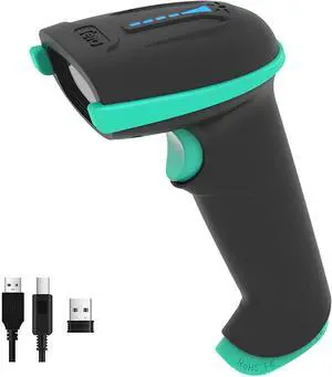 Barcode Scanner Wireless Versatile 2-in-1 (2.4Ghz Wireless+USB 2.0 Wired) with Battery Level Indicator 328 Feet Transmission Distance Rechargeable 1D Laser Bar Code Reader USB Handheld (Green)