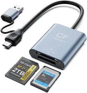 CFexpress Type B Card Reader with USB 3.2 (Gen 2) 10Gbps, USB-C&USB-A 2-in-1 Type B CFexpress Adapter, Compatible with Windows/Mac/Linux/Android(Not for XQD Card)