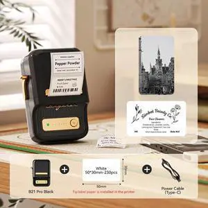 JVFYI NiiMbot B21 Greeting Card & Color Label Printer | Easy-Operated Thermal Printer for Flower Shops & Retail Gifting Black