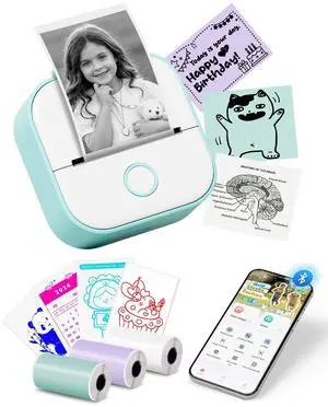 Mini Printer - T02 Sticker Printer Print Pod Portable Thermal Inkless Sticker Maker Bluetooth Pocket Mini Photo Printer Instant Print, Smart AI APP, for Student Study Note, Journal, DIY, Gift