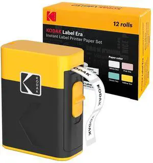 Label Maker Machine + 12-Pack Refills Bundle, Safe Blade Label Printer for Office, School & Home Organization, Yellow