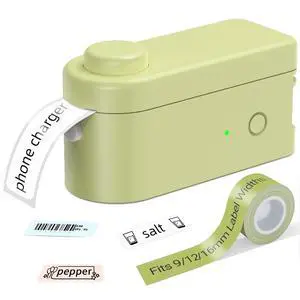 L1 Label Maker Machine with Tape - Portable & Rechargeable Label Makers Compatible with 9 12 16mm Waterproof Tape - Mini Bluetooth Labeler for Organizing Office Home School (Green Tape)
