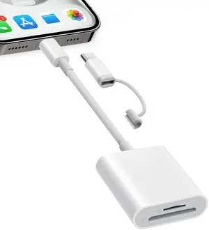 SD Card Reader for iPhone, iPad, Samsung, Memory SD Card Reader USB C&Lightning Dual Port Micro SD Card Reader with USB Camera Adapter Plug and Play Trail Game Camera Card Viewer Supports SD/TF Card