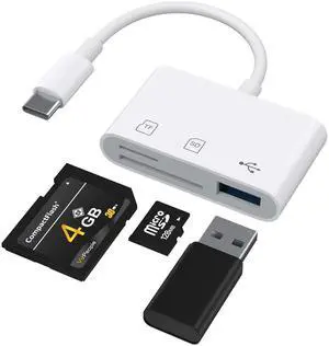 SD Card Reader for iPhone/ipad/Android/Mac/Computer/Camera,4 in1 Micro SD Card Reader Trail Camera Viewer, Portable Memory Card Reader SD Card Adapter for SD and TF Cards(White)