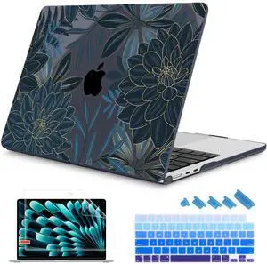 Mektron for 2025 M4 MacBook Air 13.6 Inch A3240 Case Fits 2023 A2681 M2 2024 A3113 M3 Chip with Liquid Retina Display Touch ID, Printed Plastic Hard Shell Cover for MacBook Air 13.6", Dahlia Flowers