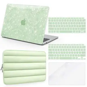 B BELK Compatible with MacBook Air 13 inch Case MacBook Air M1 Case 2021 2020 2019 2018 (A2337 M1 A2179 A1932) + Puffy Laptop Sleeve Bag + 2 Keyboard Covers + Screen Protector, Glitter Pearly Green
