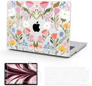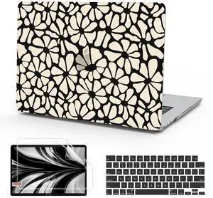 Batianda Premium Case for New MacBook Air 15 inch 2025 2024 2023 with M4 M3 M2 Chip, Designed Protective Plastic Hardshell & Keyboard Cover & Screen Protector, Lovely Flower