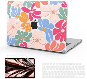 B BELK Compatible with MacBook Air 13 inch Case 2025 2024 2023 2022 M4 M3 M2 A3240 A3113 A2681, Plastic Hard Shell + Keyboard Cover + Screen Protector for MacBook Air 13.6 inch Case, Colorful Flower